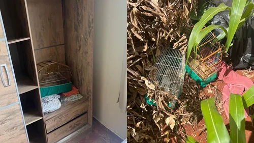 Segundo os agentes, gaiolas foram encontradas camufladas em locais inusitados: uma estava escondida dentro de um guarda-roupa e outras cinco foram localizadas nos fundos do quintal, cobertas por uma lona preta e uma toalha vermelha, sob galhos secos de um pé de manga.