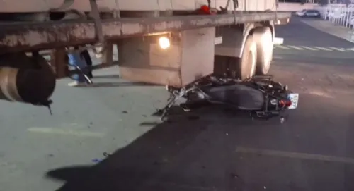 Moto para embaixo de caminhão após acidente em Arapongas