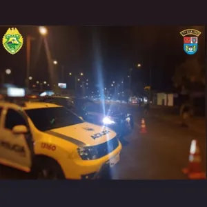 Ao tentar fugir, conforme a PM, o motociclista se desequilibrou e caiu no chão. Durante a busca pessoal, a equipe percebeu que o garupa estava com um copo de bebida alcoólica e o maior, de 18 anos, que estava dirigindo, não tinha Carteira de motorista. Após teste de alcoolemia, os policiais constataram que ele havia bebido.