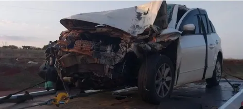 De acordo com testemunhas, o carro acabou batendo na traseira do caminhão. Com o forte impacto, a frente do veículo ficou completamente destruída.
