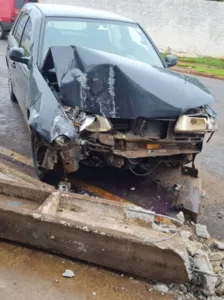 O motorista estava sozinho no veículo, que teve a frente bastante destruída. O poste, ao ser atingido com um forte impacto, caiu sobre a calçada.
