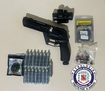 A arma de pressão e os acessórios foram levados para a central da Guarda Municipal, onde ficarão à disposição para retirada pelo proprietário, que deverá comprovar a posse legal do objeto.