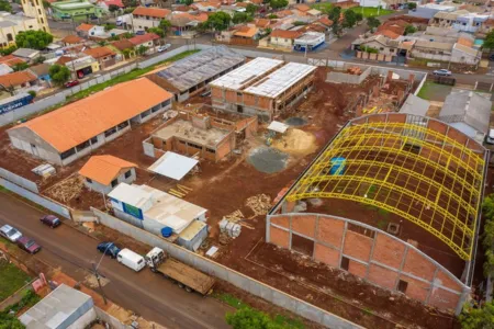 Com as etapas de terraplenagem e compactação já executadas, a obra de construção da Escola Estadual do Alto da Boa Vista – Zona Sul, em Arapongas, ganha cada vez mais força com o avançar das fases de concretagem e execução estrutural. Com imagens do alto é possível ver que parte das paredes da ala administrativa e salas de aulas já foram levantadas. O ginásio de esporte também já ganha corpo com boa parte das estruturas já construídas. A nova escola da Zona Sul está localizada um terreno na Rua Tanatau, ao lado do 18 Horas Antônio J. Marques.