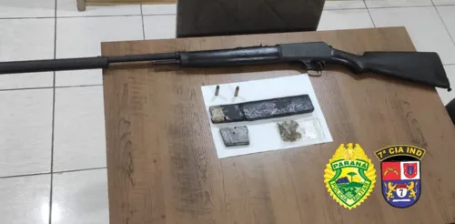 A Polícia Militar (PM) de Arapongas prendeu um homem de 29 anos, morador do Jardim Mônaco, por posse ilegal de arma de fogo de uso restrito. Além da arma, a polícia também encontrou uma porção de maconha. A ocorrência foi registrada na tarde desta quinta-feira (08).
