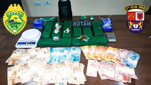 A PM encontrou na rua um tablete de maconha que pesou 339 gramas. Já durante buscas na casa, os policias encontraram mais 5,927 Kg da droga, 3,3 gramas de crack, duas balanças de precisão e R$ 3675, dinheiro que seria do tráfico.