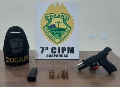 Um homem de 44 anos que estava no centro de Arapongas foi flagrado com uma arma na cintura. Denúncias informaram a Polícia Militar (PM) que apreendeu uma pistola calibre 380 no começo da noite de sábado (18).