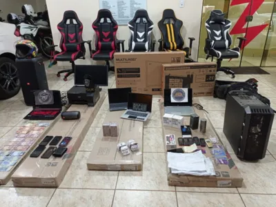 No momento da chegada das equipes policiais, ainda segundo a PM, os presos tentaram desligar os computadores e apagar os softwares. Porém, devido à ação rápida de militares foi possível flagrar tudo em pleno funcionamento. Vários objetos como celulares, notebooks, computadores desktop, dezenas de chips de celulares, televisores além de 2 veículos utilizados pelos abordados foram apreendidos e foram entregues juntamente com os presos na 22ª Subdivisão Policial de Arapongas.