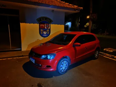 Segundo a PM, a equipe realizava patrulhamento pelo centro do município quando observou um VW Gol vermelho que, ao avistar a viatura, freou bruscamente no semáforo do cruzamento das ruas Flamingos com a Lori.