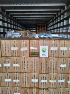 Segundo a PRE, a Receita Federal informou que a empresa era investigada por diversos crimes de transporte de ilícitos. O caminhão foi encaminhado até o pátio da receita e durante a fiscalização, os policiais encontraram 490 caixas de cigarros oriundos do Paraguai, com mais de 240 mil maços.