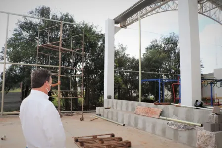 O prefeito de Arapongas, Sérgio Onofre, acompanhado do secretário de Cultura, Lazer e Eventos, Geison Cortez, esteve em vistoria na obra de reforma da Feira da Lua. No local, os serviços chegam a 80% de conclusão. Nesta etapa estão sendo executadas parte de pinturas, pavimentações externas, instalações da rede de combate a incêndio, construção da meia quadra de basquete e instalações de área emborrachada do parquinho infantil – que já conta com os brinquedos instalados. Anteriormente, as equipes realizaram a finalização da reforma do barracão existente, além da execução da parte de drenagem e esgoto e cobertura da ala central, situada na Rua Jandaia. A próxima etapa consiste na pavimentação da área externa e serviços finais. A obra da Feira da Lua conta com investimentos de R$ 2.296.417,79. O edital de licitação foi preparado pelo Paranacidade. Para o prefeito, a obra contempla investimentos importantes que o município tem recebido nesses últimos anos, em diversos segmentos. “ A Feira da Lua vai ficar linda. Uma das mais bonitas obras. Será um local adequado para o entretenimento e lazer. Com espaços amplos e de qualidade para proporcionar à população um local maravilhoso, como a nossa cidade merece”, afirmou. A reformulada Feira da Lua também dará espaço para o Atuar – Curso Livre de Teatro de Arapongas, com camarim, palco e arquibancada.