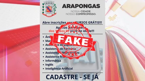 A Prefeitura de Arapongas (PR) informa que não está ofertando cursos gratuitos de diversas áreas conforme estão divulgando duas empresas que têm usado a logomarca com o brasão do município. Essas supostas oportunidades não ocorrem em parceria com a Prefeitura e nem tiveram autorização para o uso das imagens oficiais do município.