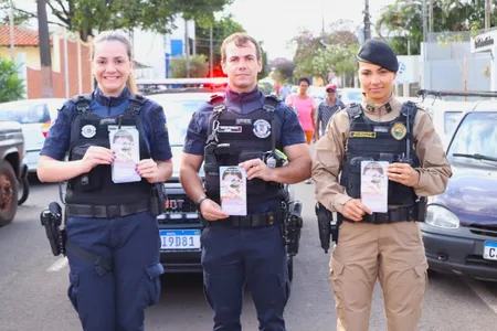 A Patrulha Maria da Penha realizou uma distribuição de panfletos com orientações sobre os tipos de violência doméstica e familiar