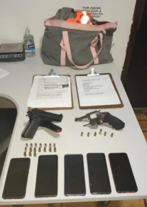 No imóvel usado como cativeiro, a PM prendeu mais dois homens armados com pistola Taurus calibre 380 e um revólver calibre 32.