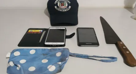 Com as características do suspeito, a GM realizou buscas e encontrou o ladrão na Rua Rouxinol, na Vila Édio. Durante abordagem foi encontrado a faca usada no roubo, além do celular e a bolsa da vítima.
