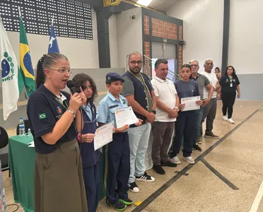 Na sequência, o superintendente participou do encerramento da Campanha Solidária Amor de Lacre, promovida pela Escola Municipal Nereide Camargo. A iniciativa arrecadou lacres de alumínio que foram convertidos na aquisição de cadeiras de rodas destinadas a instituições do município. O ato reuniu autoridades locais, entre elas secretários municipais e vereadores, valorizando o engajamento da comunidade escolar em ações de solidariedade e cidadania.