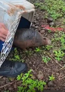 Tatu-galinha é capturado na área urbana de Arapongas