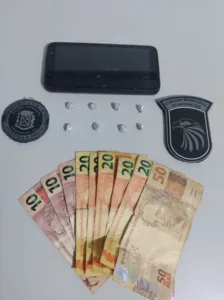Segundo o boletim, com a mulher foi encontrada a quantia de R$ 180 em dinheiro trocado e ao verificar o que havia sido dispensado ao solo, a GM localizou duas pedras de crack embaladas e prontas para venda.