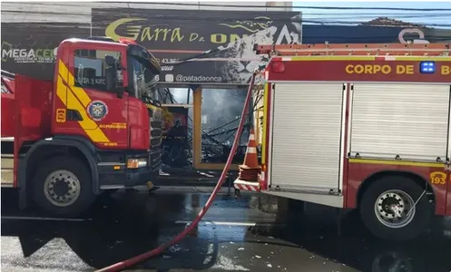 Fogo atingiu comércios na Rua Andorinhas e mobilizou Bombeiros e Defesa Civil; não há feridos