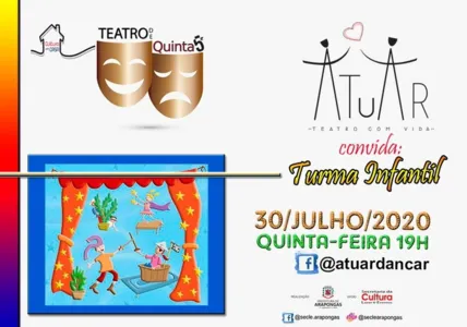 Nesta quinta-feira (30), o Cultura em Casa, através do ATUAR – Curso Livre de Teatro, apresentará mais um episódio do “Teatro de Quinta”.