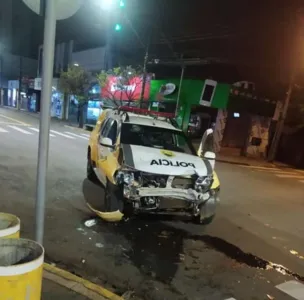 Conforme a PM, o acidente foi durante o deslocamento para atendimento de um ocorrência de furto e a batida aconteceu. Um carro foi atingido.