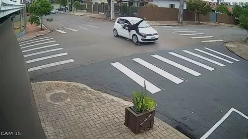 Um vídeo gravado em Arapongas e compartilhado pela Prefeitura mostra um acidente envolvendo uma jovem de patinete e um veículo na área central da cidade. A vítima foi arremessada e sofreu ferimentos nas mãos e outras escoriações. A colisão ocorreu na última quarta-feira (28) e foi registrada por câmeras de monitoramento.
