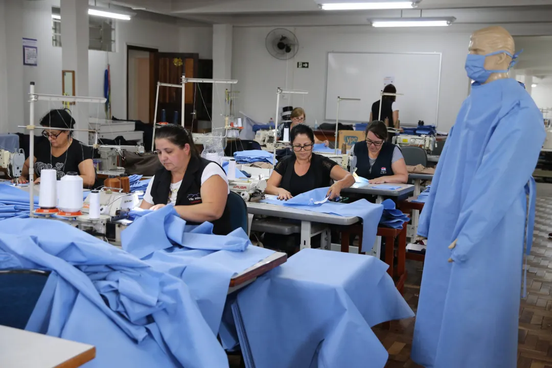A produção ganha escala com a entrada da Associação da Vila Militar (AVM). A fábrica instalada dentro do complexo em Curitiba conta com 60 funcionários civis que estavam em férias coletivas como forma de controle à circulação do vírus. O grupo, que normalmente é responsável pela confecção de uniformes da Polícia Militar, Corpo de Bombeiros e escolas militares, foi recrutado novamente para colaborar com a força-tarefa. O trabalho é voluntário.