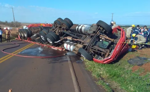 Carreta tomba e deixa duas pessoas feridas entre Jardim Alegre e Lidianópolis