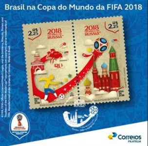 Os Correios lançam nesta quinta-feira (14) a emissão especial “Brasil na Copa do Mundo da FIFA – Rússia 2018”. A arte da peça foi criada por Daniel Effi e é composta por um bloco de dois selos.