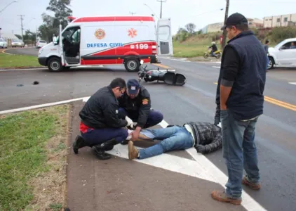 Um motociclista de 41 anos ficou ferido após se envolver em colisão com um carro, nesta sexta-feira (15), na BR-376, em Jandaia do Sul. O acidente aconteceu por volta das 8 horas, em trecho conhecido como trevo da Emater.
