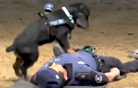 Cão policial faz 'massagem cardíaca' em agente em vídeo viral na Espanha, veja