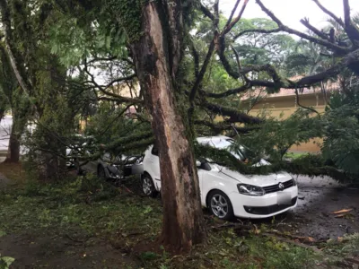 Dois carros foram danificados após serem atingidos por uma árvore de grande porte, na manhã desta quinta-feira (9), em Maringá. O acidente aconteceu na Rua Alfredo Pujol, na Zona 5, que ficou bloqueada por conta da queda.