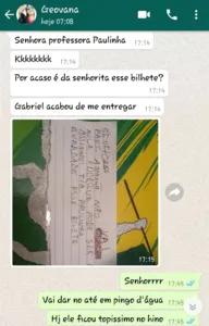 A professora ressaltou que Gabriel é um aluno estudioso e que adora escrever bilhetes durante as aulas.