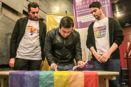 A carta foi enviada a todos os candidatos ao governo do Estado. Os ativistas Lucas Siqueira e Dhyego Lima entregaram uma carta-compromisso com políticas da diversidade, assinada por João Arruda na quinta-feira à noite, na Pontifícia Universidade Católica do Paraná (PUC), pouco antes de o candidato participar de uma sabatina com jornalistas, professores e estudantes da instituição.