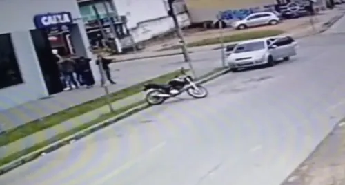 O assalto foi registrado por uma câmera de segurança de um estabelecimento próximo ao local flagrou a ação dos assaltantes.