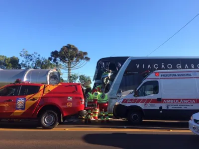 Pelo menos dez pessoas ficaram feridas após acidente entre um ônibus e um caminhão-tanque, neste sábado (10), na BR-277 em Cascavel. De acordo com a Polícia Rodoviária Federal (PRF), a batida aconteceu por volta das 6 horas.