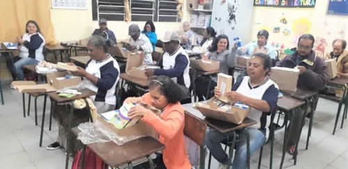 Alunos da EJA utilizam novos materiais escolares durante aprendizagem