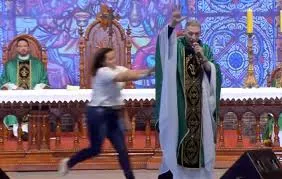 Padre Marcelo Rossi cai do palco após ser empurrado durante missa