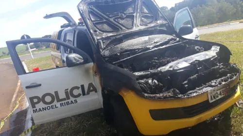 Uma viatura da polícia militar de Manoel Ribas pegou fogo na tarde desta quarta-feira (24), no entroncamento da PR 466 e PR 487, na saída para Pitanga e Nova Tebas, região central do Estado.