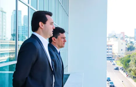 O governador Carlos Massa Ratinho Junior e o ministro da Justiça e da Segurança Pública, Sergio Moro, se encontraram nesta segunda-feira (16), no Palácio Iguaçu, para discutir detalhes da implementação do primeiro escritório de inteligência integrado na fronteira de Foz do Iguaçu, chamado Projeto Fusion.