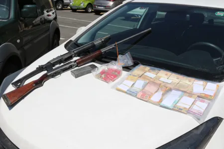 No carro em que estavam foi localizado um malote, com a identificação do banco roubado, com mais de R$ 40 mil em dinheiro. Todo o material e os presos, foram levados para o Centro de Operações Policiais Especiais (Cope).