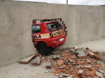Motorista perde controle do carro durante teste de baliza e atinge muro do Detran em Curitiba