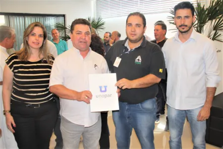O secretário municipal da Agricultura, Serviços Públicos e Meio Ambiente (Seaspma), Renan Rodrigues Manoel, e o professor do curso de Agronomia da Unopar e extensionista da Emater, Dr. Ricardo Augusto da Silva, entregaram ao prefeito Sergio Onofre e ao vice-prefeito Jair Milani uma cópia do Projeto Saneamento Ambiental Rural Ete – Zona de Raízes. A engenheira agrônoma e diretora da Seaspma, Vicky Vergara Lopes, também esteve presente.