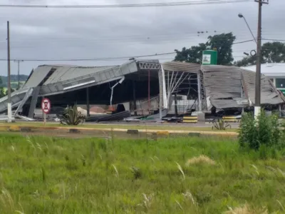 Vento derruba cobertura de posto de combustíveis em Ponta Grossa