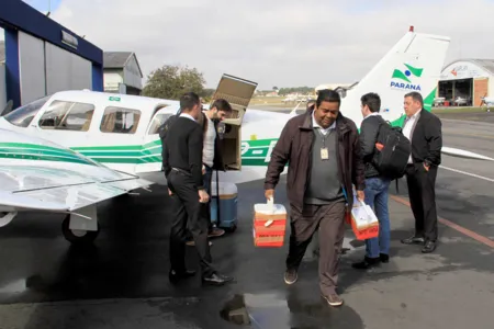 APOIO AÉREO – Em casos em que os doadores estejam até 200 quilômetros de distância do receptor, o Sistema Estadual de Transplante realiza o transporte dos órgãos ou tecidos por via terrestre. Além desta distância, é solicitado apoio aéreo para agilizar o procedimento.