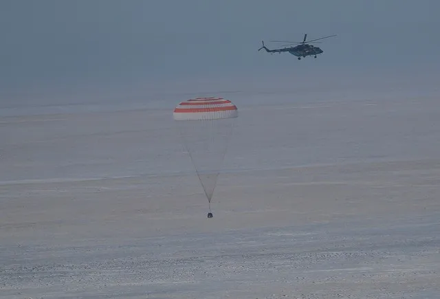 Módulo espacial Soyuz volta à Terra após astronauta americana bater recorde no espaço