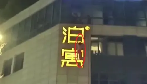 Um homem foi visto pendurado apenas de cueca em uma estrutura luminosa na fachada de um prédio na cidade de Hangzhou, na China, após uma tentativa desesperada de fuga. A cena bizarra, registrada por vizinhos, teria ocorrido quando ele foi surpreendido pela esposa durante um encontro extraconjugal.