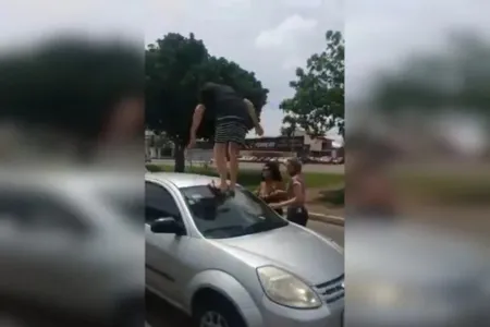 O condutor a perseguiu e, no momento em que ela parou no semáforo, depredou o automóvel da mulher pulando no para-brisa. Violento, ele ainda agrediu física e verbalmente a mulher. Veja o momento: