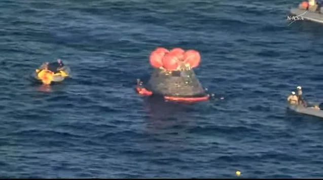 Os quatro astronautas a bordo da cápsula Orion pousaram no oceano às 21h07 (horário de Brasília), encerrando a jornada de quase dez dias