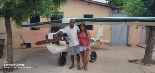 "Meu plano era fazer o avião de fibra, mas eu não tinha condição. Aí eu vi que minha mãe tinha comprado uma bica de zinco porque quando chovia caía água dentro da casa dela. Quando eu vi eu disse: 'mãe, você vai ter que me dar para eu colocar no avião'. Ela me perguntou: meu filho e a casa? Eu disse: ‘a casa depois a gente resolve'".