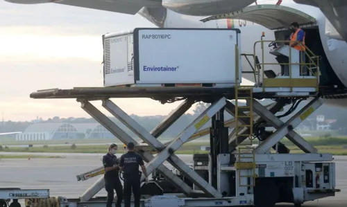 O lote enviado pelo laboratório Sinovac tem 8,2 mil litros de insumo farmacêutico ativo (IFA). No dia 10, o Butantan havia recebido 5,6 mil litros de IFA e no dia 3, uma remessa de 5,4 mil litros.